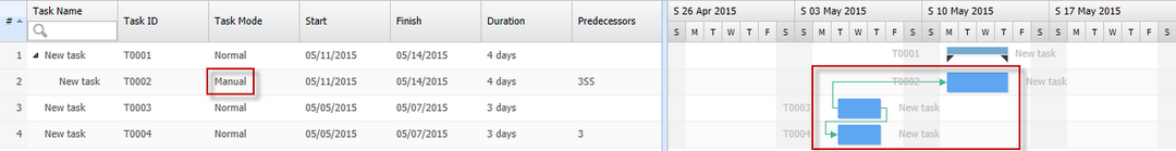 ❖There are some tasks in "Manual" mode. ❖When you drag a successor task to break its relationship with its predecessor task(s).